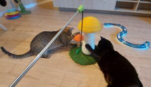 Joc interactiv: folosește jucării tip undiță în sesiuni de 10-15 minute, o dată sau de două ori pe zi. Acest lucru imită comportamentul de vânătoare și oferă stimulare mentală și fizică.